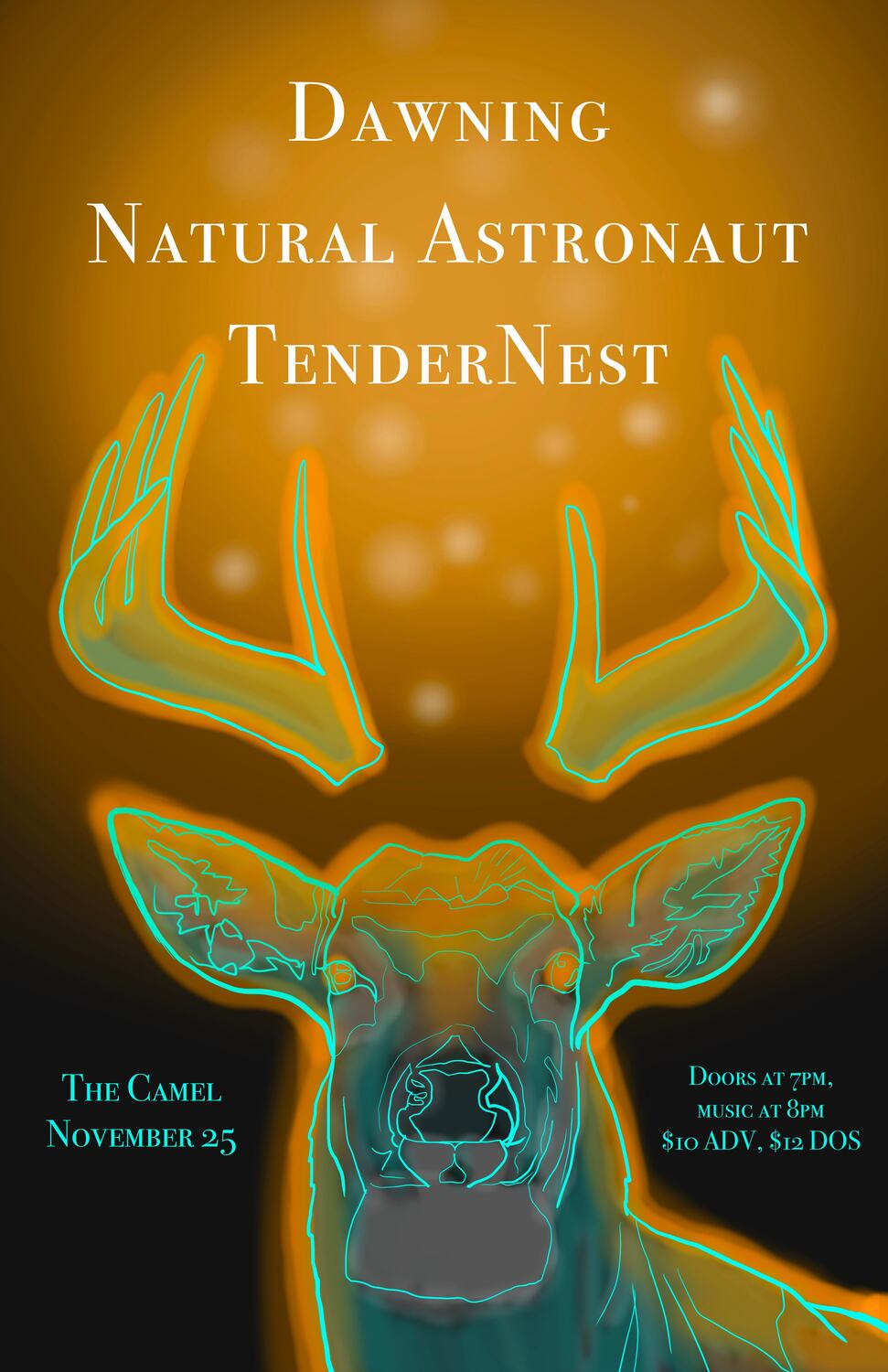 Tendernest, Natural Astronaut, Dawning at The Camel Monday, November 25th, 2025 Doors at 7pm, Music at 8pm $10 ADV, $12 DOS